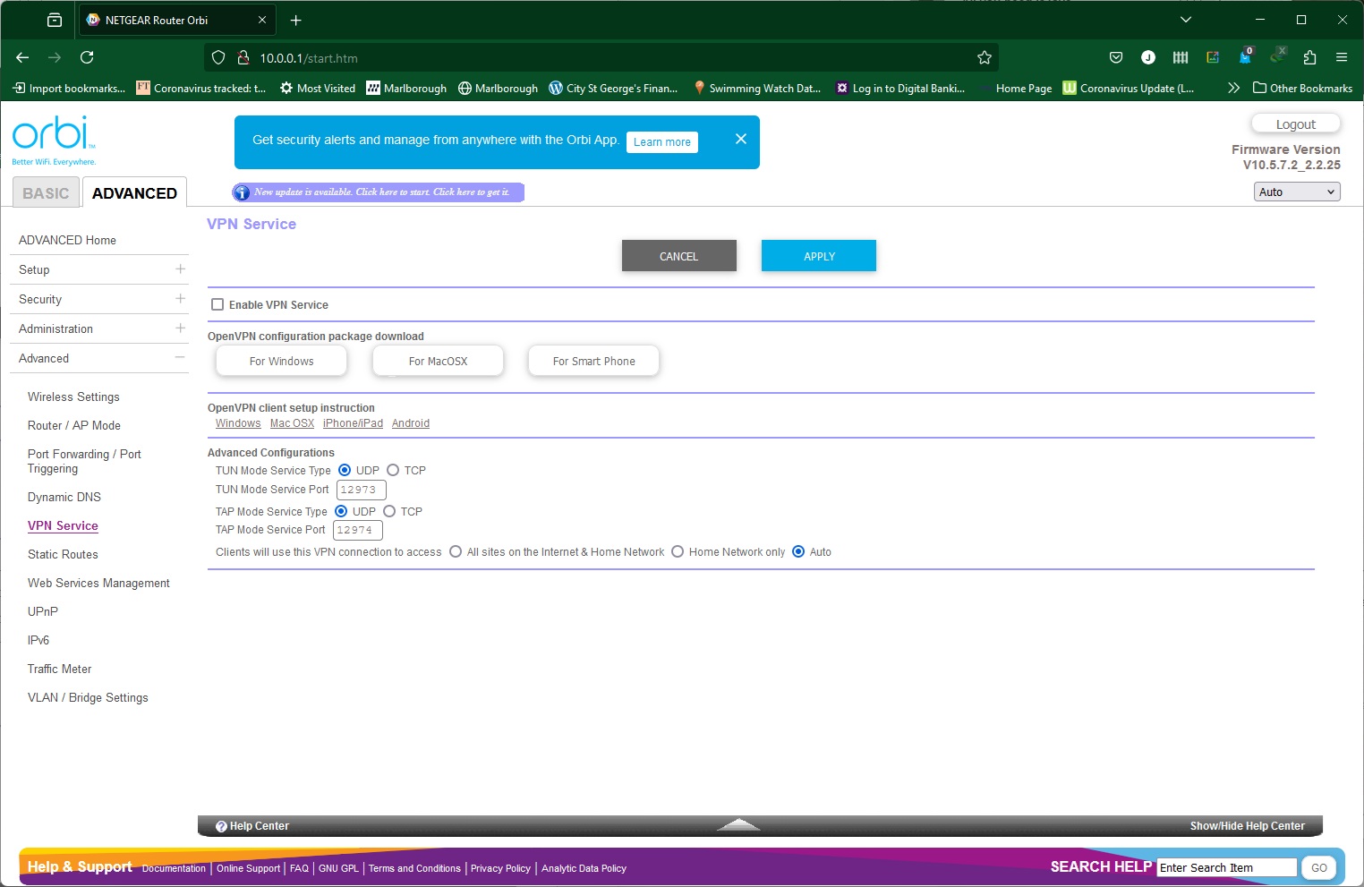 In the final Advanced tab (so that's Advanced Advanced…) you can more finely tune how your wireless network operates. You can switch the router to AP mode, and configure port forwarding so devices on the local network can serve certain ports to the public Internet. Some of the presets here are laughably old, like ICU, Real-Audio, and Quake 2. But you can set up your own custom options as well. To go with this, there is support for Dynamic DNS services from NETGEAR itself, No-IP and Dyn. The Orbi router can also act as a VPN server using the OpenVPN system, with instructions how to setup clients for Windows, MacOSX, iPhones and Android.
