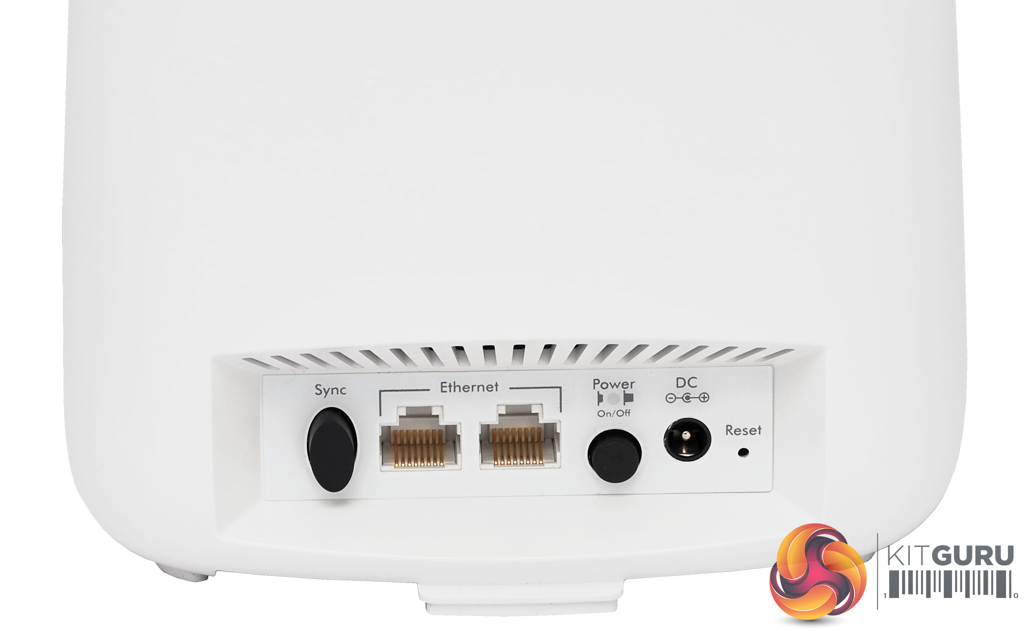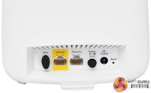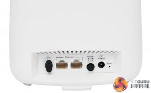 The ports on the router and satellite are almost identical, too. In between the sync switch on the left and power switch on the right (when viewed from behind) can be found two Gigabit Ethernet ports. However, on the router, one is coloured yellow and this is the one that must be used for attachment to your broadband modem, or for hooking up to the main network in access point-only mode.