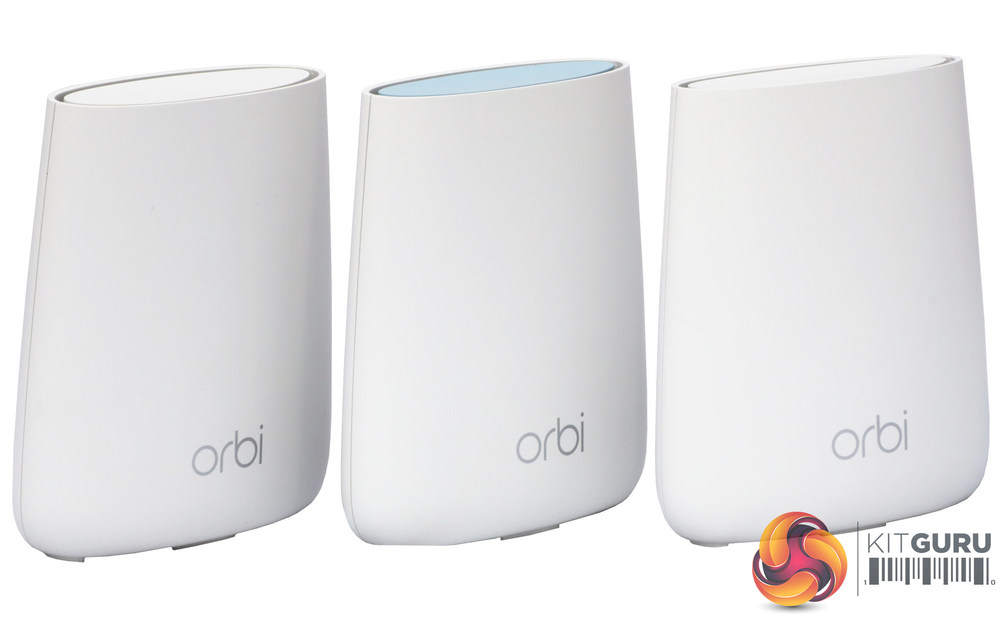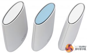 All three units look almost identical. However, as with previous Orbis, the router unit has a blue top and the satellites white tops. It also comes with a sticker detailing the default WiFi SSID and password, which all three units have been pre-configured to use.