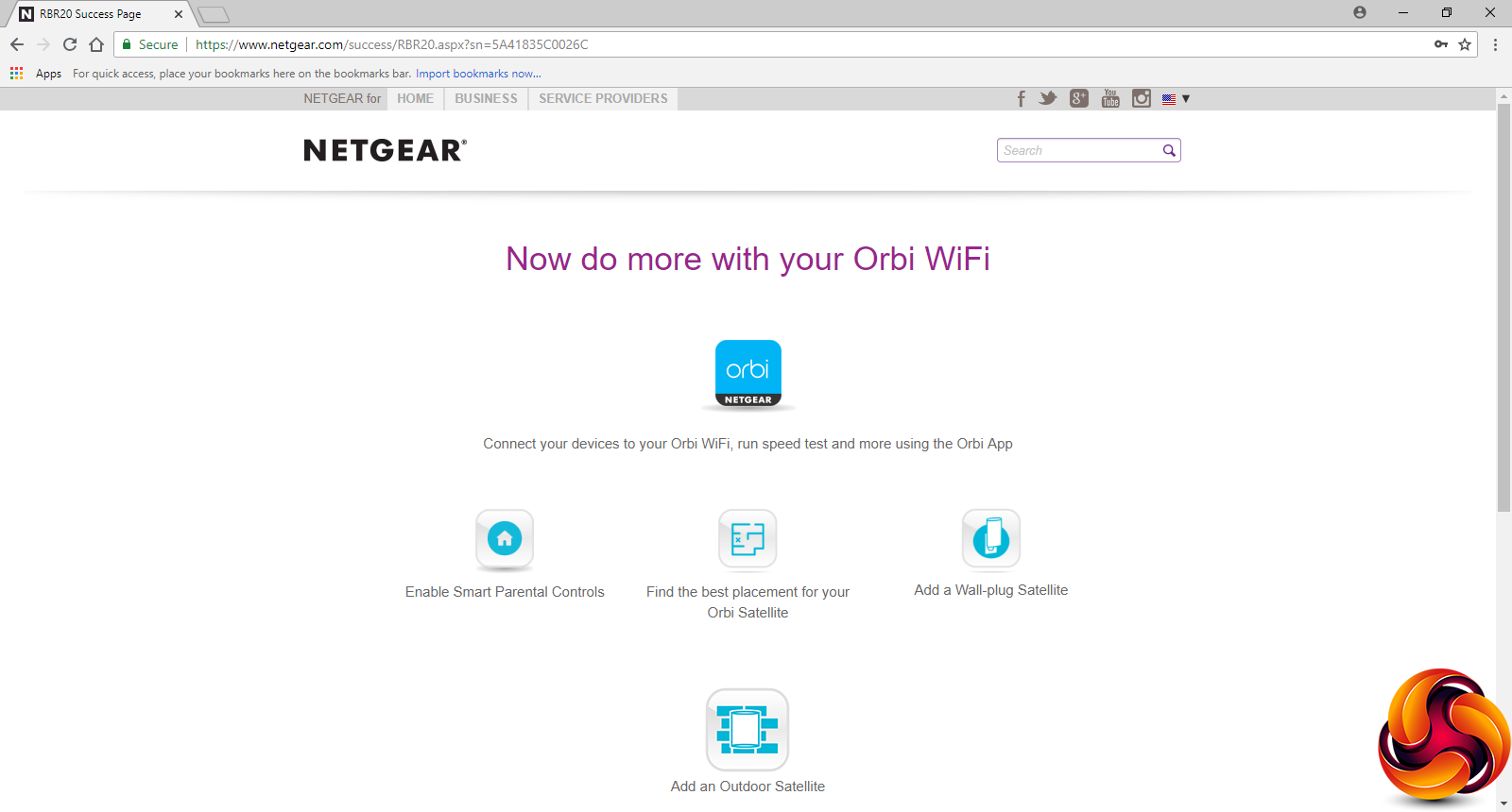 Finally, you're asked to sign up and register your product with NETGEAR, ending up on the NETGEAR website afterwards. This includes adding wall plug and outdoor satellites, some advice on placement, and online tools via the Orbi App. But the most novel aspect is the Parental Controls system provided in partnership with Disney's Circle.