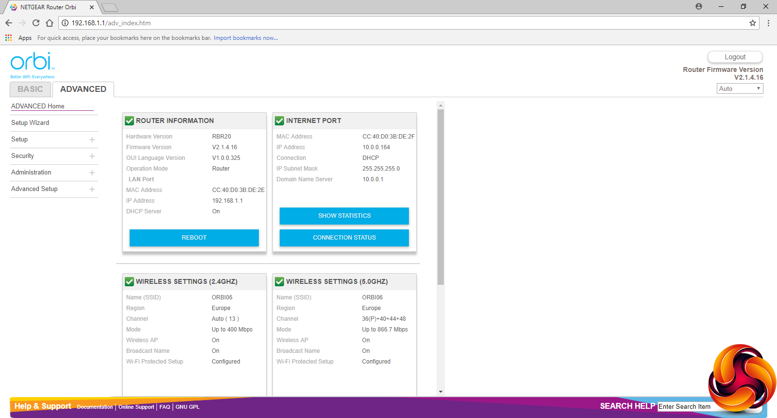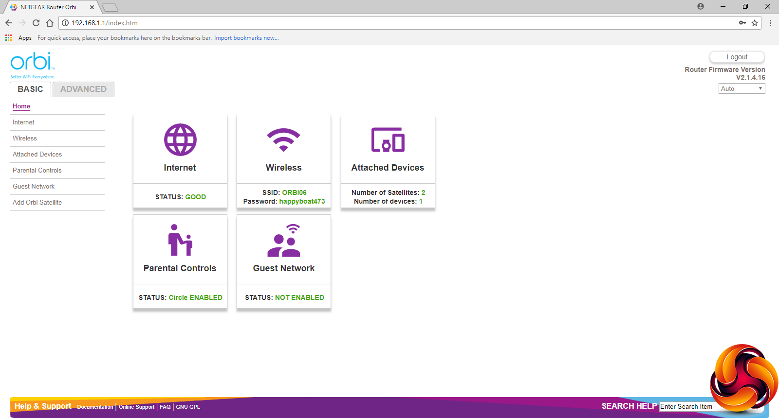 Once you have decided upon whether to use Circle, the main Orbi admin interface appears. This is exactly the same as with other members of the Orbi range, with identical features. The initial screen provides an overview of the status of the router and main services.