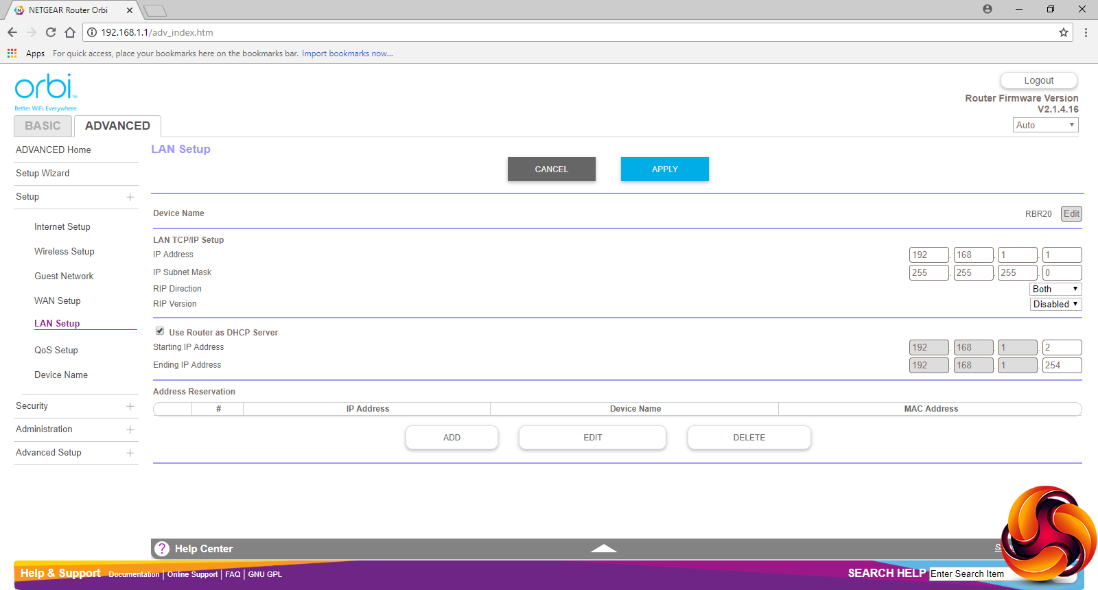 The bottom three options in the Setup section include configuring how the LAN DHCP server operates. The QoS Setup section is a bit of a disappointment, as it only appears to include a broadband speed test. Finally, you can change the router device name.