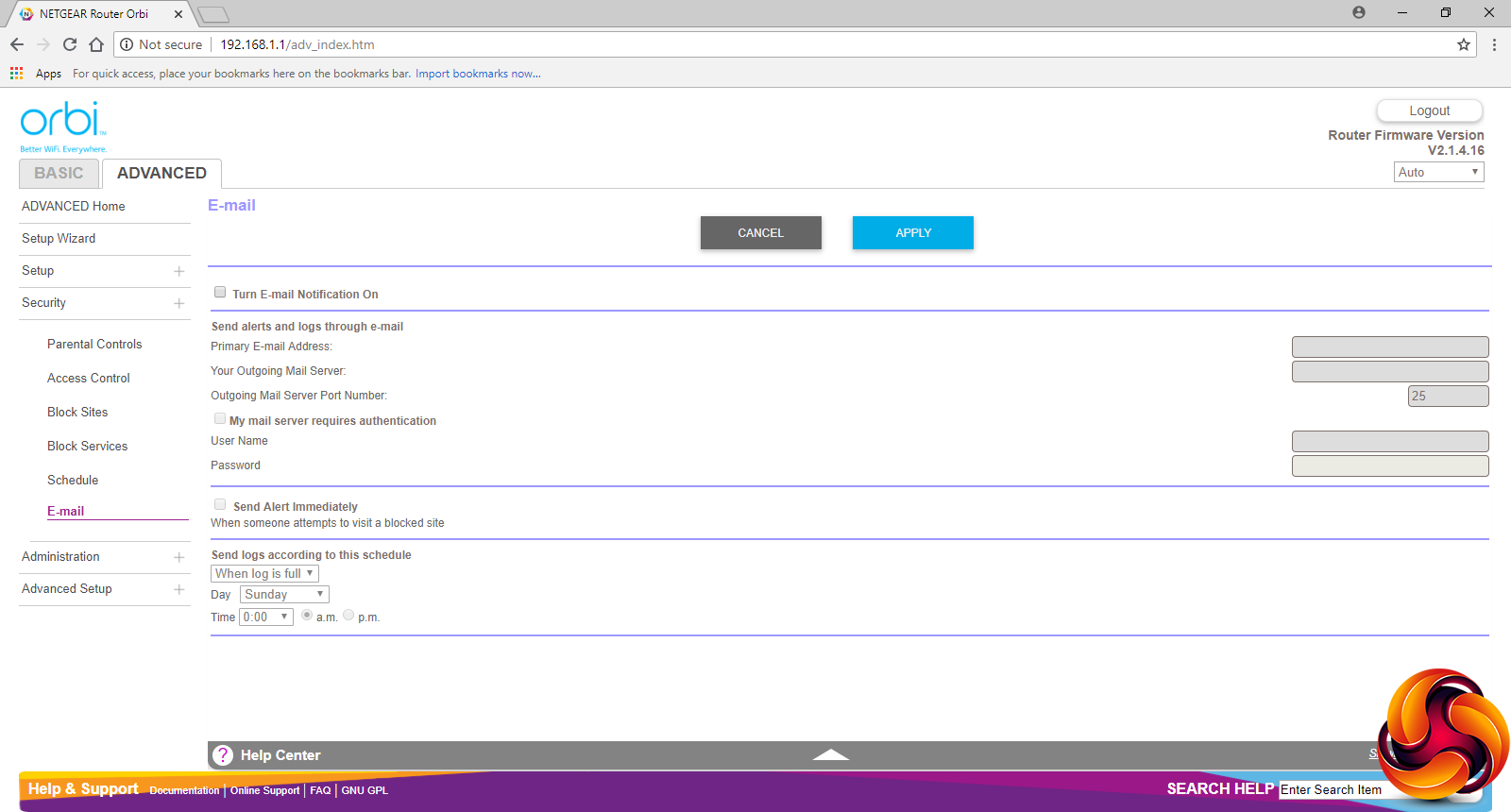 You can also block Internet access at specific times of day and days of week, although strangely not on a per-device basis, which is a notable omission. Finally, you can configure email notifications.