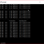 In each case, we used the freely available iPerf 3.1.3 software, which stresses a network by sending packets of random data and measures the throughput. One system acts as a server, and the other as a client, as data is sent between them. In all cases, we used an Armari Windows 10 workstation connected to the primary Lyra unit via Gigabit Ethernet as the server, so that the WiFi was always the slowest connection.