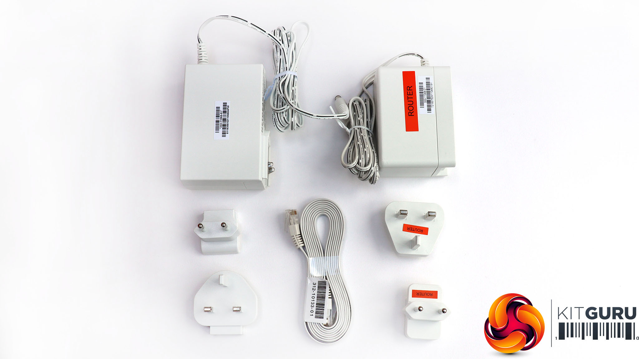Apart from the units themselves, you get their respective power supplies, with adapters for UK and European plugs, plus a single ribbon Ethernet cable for connecting to your broadband router. You'll notice that the two power supplies are slightly different. The router's is 12V 3.5A, whilst the speaker satellite takes 19V 3.16A, as the audio output necessitates higher power consumption.
