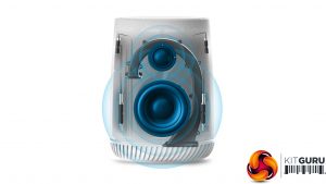 The speaker setup inside the Orbi Voice is definitely a cut above the average home voice wireless speaker. Let's compare the specification to a KRK ROKIT active studio monitor, since we happen to have a pair of the 6in versions in the lab. The ROKIT 4 has a 1in tweeter alongside a 4in woofer, so the Orbi's only slightly behind on tweeter size. The ROKIT 4 has 30W output power, so the Orbi's 35W means it can go a little bit louder. However, the Orbi's 63Hz-20KHz frequency range is behind the ROKIT 4's 51Hz-35KHz. However, given that most people can't hear frequencies over 20KHz, NETGEAR seems to have the important frequencies covered.