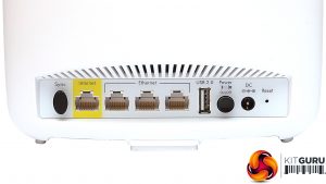 The RBR50 unit has four Gigabit Ethernet ports and a USB 2.0 connection. One of the Gigabit Ethernet ports is aimed at the WAN broadband connection, so you're left with three for wired LAN devices. The USB 2.0, which initially didn't do anything when the RBK50 was first released, can now be used for USB-connected printer sharing, but not for storage, strangely, although USB 2.0 is a bit slow for that anyway.