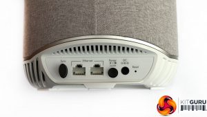 The material on the outside of the Orbi Voice satellite is mildly reminiscent of the Bang & Olufsen Beoplay products. It can't be a coincidence that NETGEAR is channelling the appearance of a premium audio brand, although the white plastic of the grille at the bottom and shiny top are more generic. The unit is also reassuringly heavy.