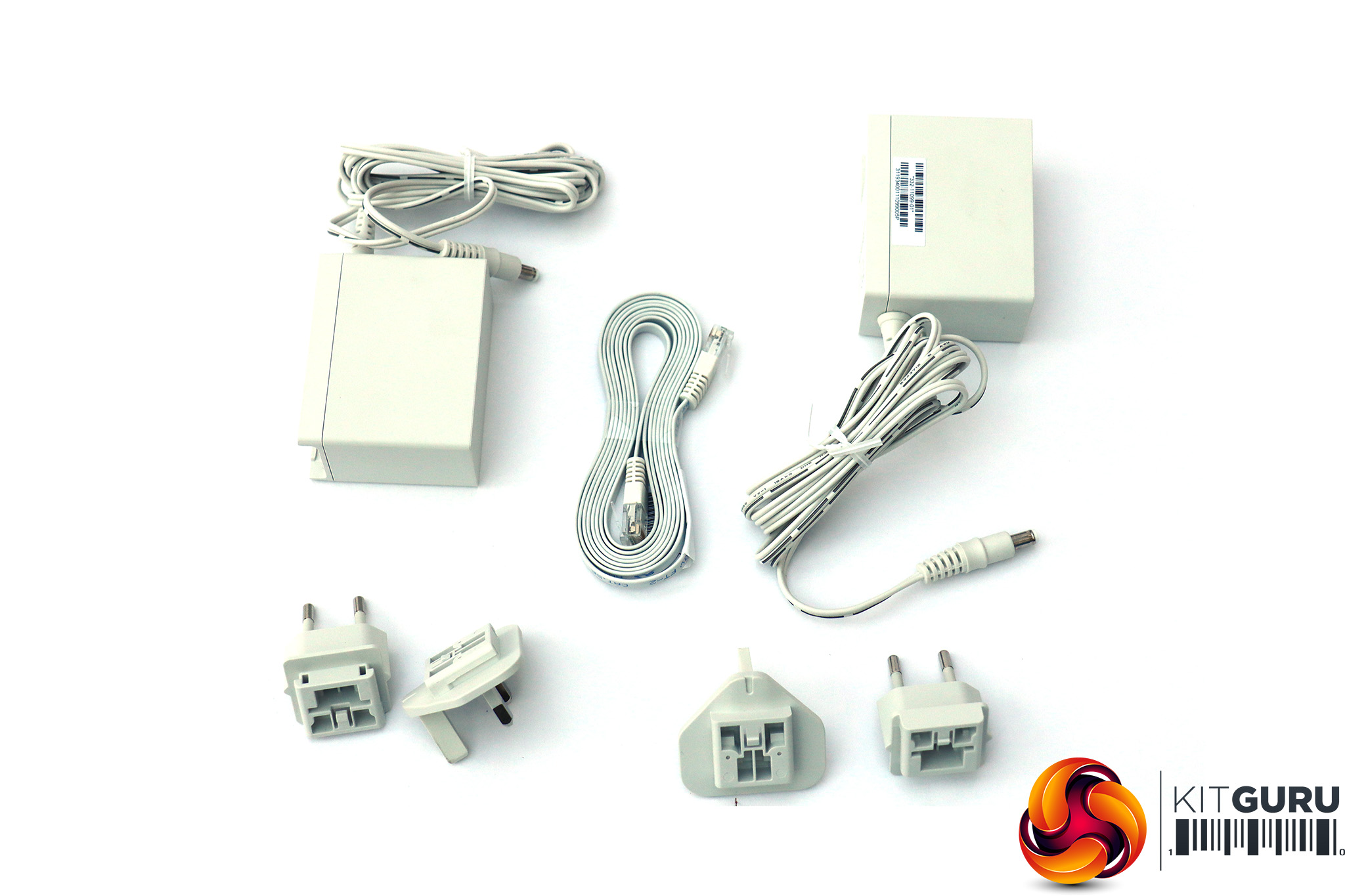 It's entirely obvious that this is a WiFi 6 product, with the label emblazoned in multiple locations on the outside of the packaging. Inside the box is the usual collection of power adapters with a choice of UK or EU plugs, plus a ribbon Ethernet cable for the WAN connection.