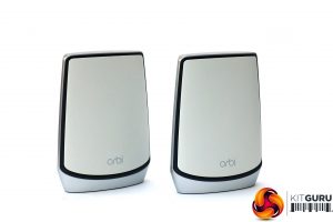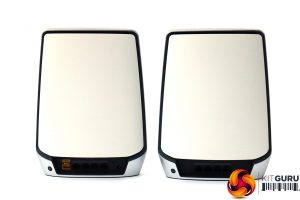 We had no complaints about the style of the original Orbi units, but the AX6000 has taken this up another notch with a cream and silver plastic exterior lined with black front and back. These are large units, but that's because of the internal antennas that enable the high WiFi bandwidth. However, the AX6000 devices are even bigger than the AC3000 ones were, and those were pretty large to begin with.