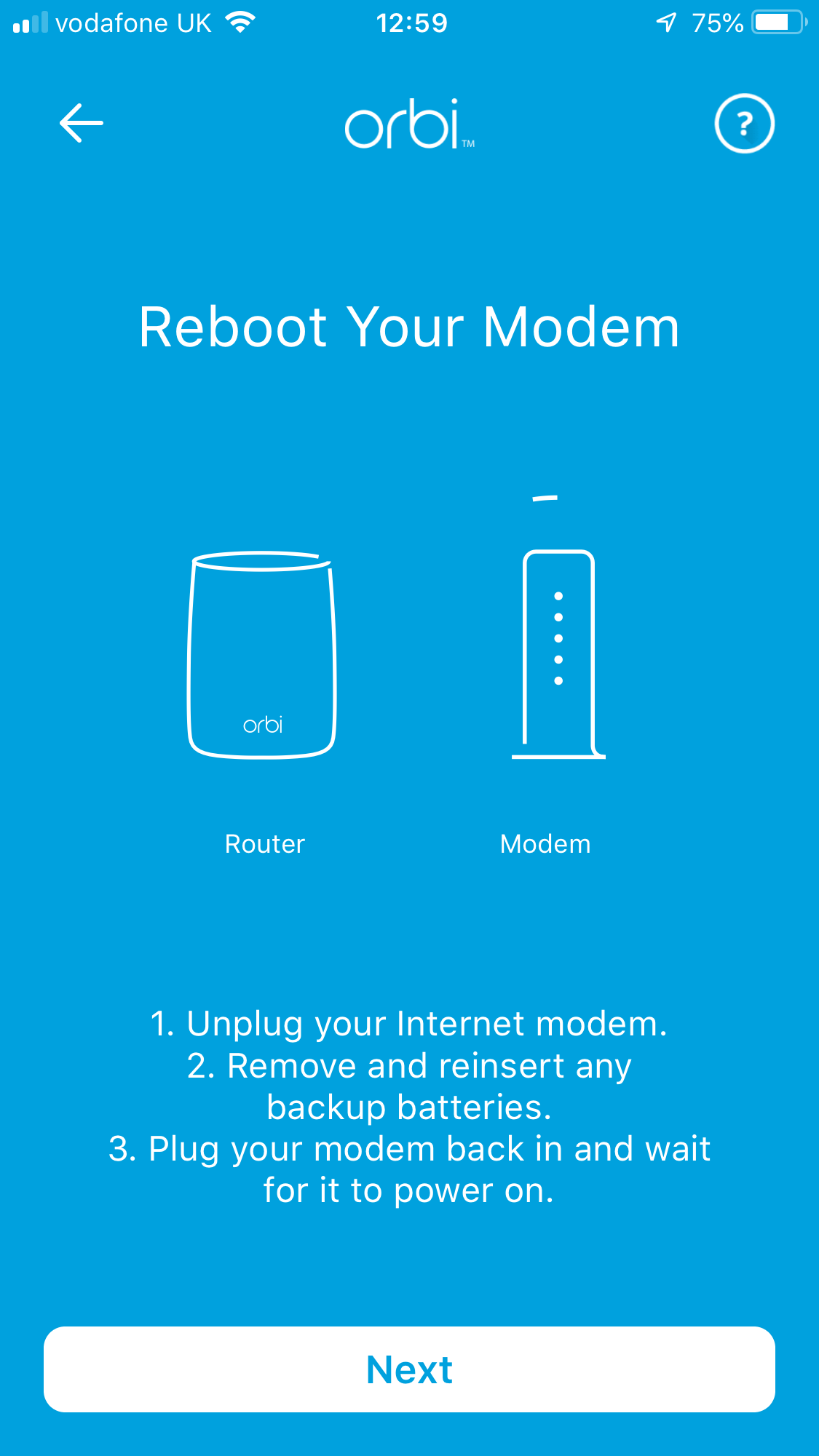 Since the Orbi units are pre-paired, you can just plug them in and turn them on. But unlike the first Orbi system we tested, you're guided to use the smartphone app rather than a desktop browser for setup.