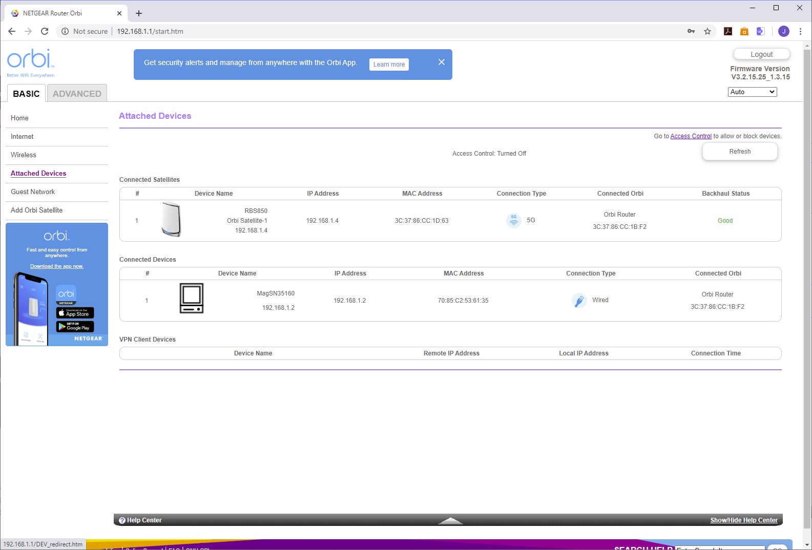 Although you can access the main features via the smartphone app, there's still a lot more available via the Web interface. This has two main areas – Basic and Advanced. In the Basic section, you can see an overview of the router status, configure the broadband Internet connection and WiFi, and get a listing of connected devices. It's also possible to set up a guest network – handy for keeping your main WLAN's credentials safe by only allowing certain people to have them. There's also a wizard for adding an additional satellite. The Internet Setup lets you turn on aggregation of the 2.5Gbits/sec port and the adjacent Gigabit Ethernet port.