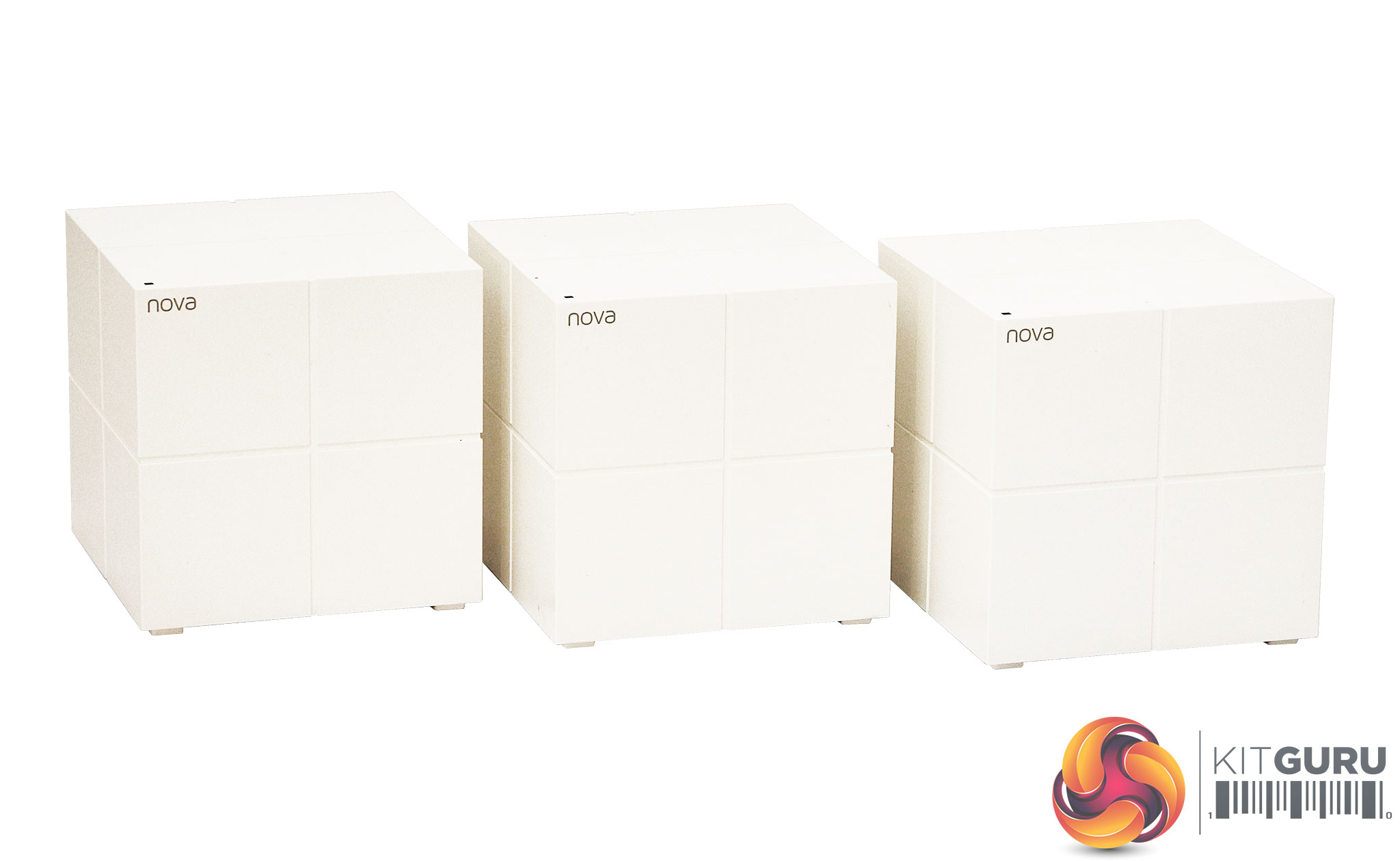 Tenda has chosen a fairly neutral cubic design for the nova MW6 units, with a larger cube subdivided into four smaller cubes, a bit like a Rubic's cube – only one that would be really easy to solve. The white finish should fit a lot of home interior designs, although the units are very light, which doesn't instill confidence in the build quality.