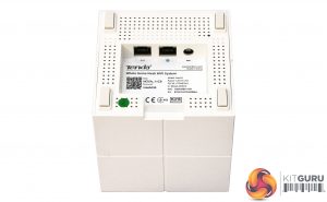 Next to the power connection, hidden under each unit, are two Gigabit Ethernet ports. One is marked for the broadband and one for client devices, but on satellite units both can be used by client devices.