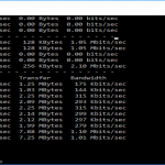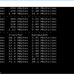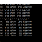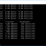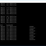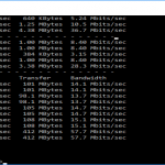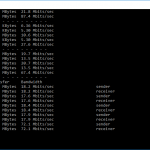 Note that the client command sends four streams of data simultaneously, simulating a multi-client connection as closely as possible with just one client. It takes 60 throughput readings at one second intervals and then averages the result.
