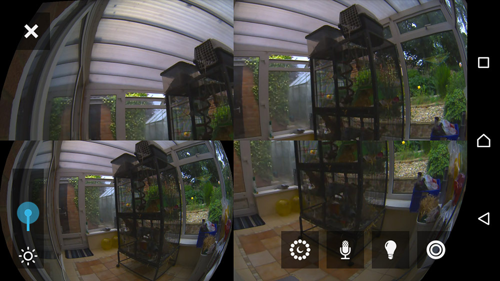 When actually viewing the video live, since it's a fish eye lens you can move it around and view all of the different parts, or split it and have four separate views from the same camera. other settings include the ability to turn the microphone on or off, as well as tweak light sensitivity; though that latter part has to be adjusted every time you view the live feed.
