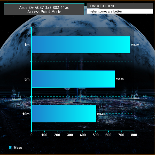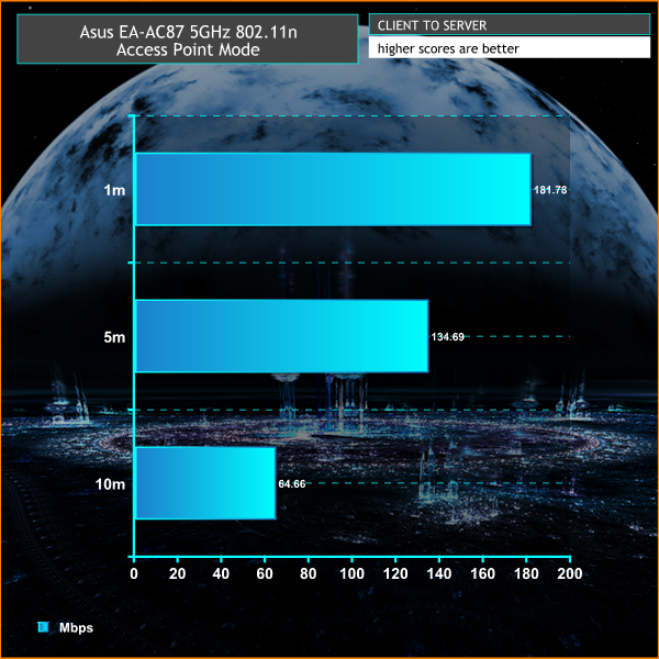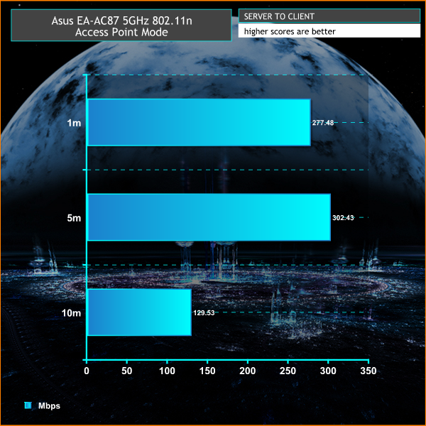 These 802.11ac results are superb, with some record-breaking performance when used with the Asus RT-AC87U. Even 3×3 mode is particularly fast.