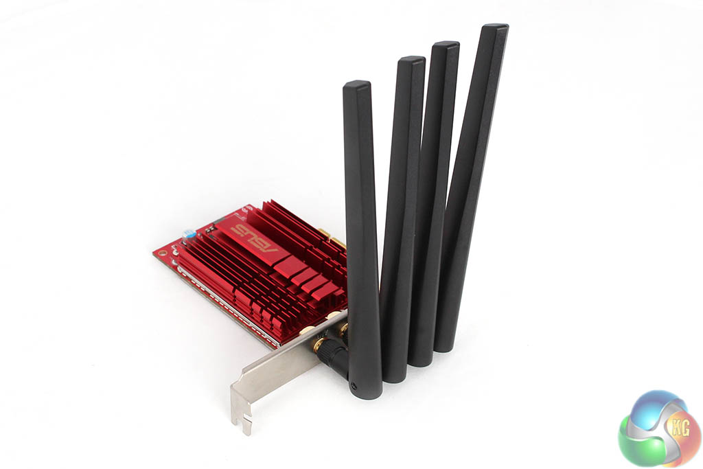 With a simple red half-length PCI card, four antennas and a replacement IO plate for use in the smallest mini ITX cases, there’s not a great deal to talk about with the physical design of the Asus PCE-AC88.
