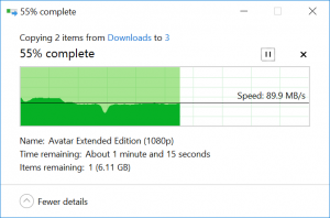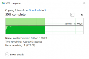 As we explained above, there is clearly some bottlenecking going on. It’s unlikely to be either of the SSDs in the PCs, which can transfer data much quicker than this, but is roughly around the real-world limit of Gigabit Ethernet. That’s quite incredible to think wireless speeds now eclipse wired.