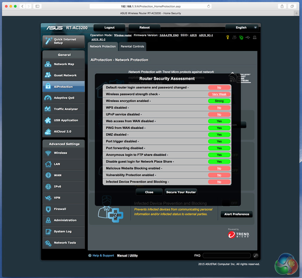 Clicking the ‘AiProtection’ button brings up a screen that offers both parental controls and router security. It can automatically block malicious sites and if you perform the Router Security Assessment, it lets you switch off various settings that may compromise security, while turning on others that can improve it.
