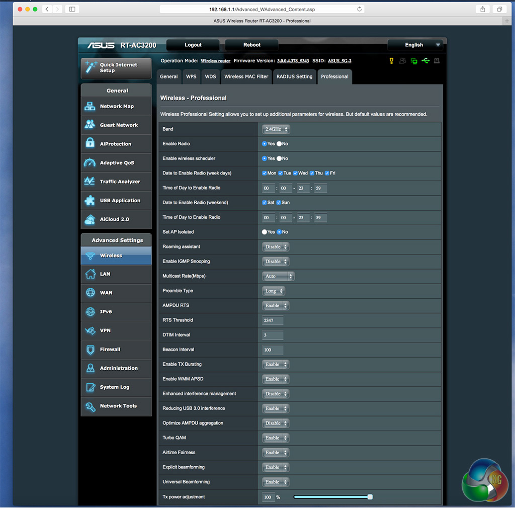 The wireless ‘Professional’ settings page has dozens of advanced options to configure your wireless networks, most of which can be safely left at default.