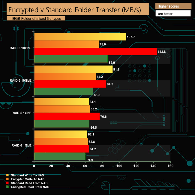 Asustor's AS4004T is a compact 4-bay NAS that sits under the company's 'Home to Power User' banner and features a 1.6GHz processor, DDR4 memory and a 10GbE RJ45 port. It also sports Asustor's latest diamond cut exterior finish. Is it worth the £340 asking price? There are just two models in the AS40**T family, the 2-bay AS4002T and the drive we are looking at here, the 4-bay AS4004T. Both use the same processor and memory combination. Sitting at the heart of the AS4004T is a dual-core Marvell ARMADA-7020 64-bit processor, using ARM Cortex A72 architecture, which is clocked at 1.6GHz. Backing this up is 2GB of DDR4 memory and if you feel the need to upgrade the memory then unfortunately you are out of luck as the memory modules are soldered directly the motherboard. The AS4004T also has a dedicated hardware AES 256-bit encryption engine. Physical Specifications Processor: Marvell ARMADA-7020 1.6GHz (Dual-Core). Memory: 2GB DDR4. Gigabit Ethernet Ports: 2 x 1GbE, 1 x 10GbE Rear panel connectors: 1 x USB 3.1 Front panel connectors: 1 x USB 3.1 RAID support: 0,1,5,6,10 Cooling: Active 1 x 120mm. Drive Bays Supported: 4. Maximum hard drive size supported: 14TB. Maximum Capacity: 56TB Maximum single volume size: 16TB Internal File System support: EXT4. Dimensions (D x W x H): 230 x 174 x 170mm. Weight: 2.2 kg. The AS4004T comes in a compact box. The front of the box displays an image of the drive in a panel on the right hand side. Next to the image are various icons describing some of the hardware features of the NAS. Under this is a list of hardware specifications and what's in the box. The back of the box is covered in multi-lingual descriptions of the services supported by the AS4004T. One side panel of the box carries images of the diamond cut exterior, magnetic front cover and how the hard drives are fitted. The other side panel displays information on how you can connect to the AS4004T and the fact you can create a dedicated cloud system. The box bundle gives you everything you need to get started. Apart from the Delta Electronics DPS-09AB-3 90W power adapter there are a pair of Cat5e (1GbE) and a single Cat6e (10GbE) cables, a driver CD and manual and fixing screws for 2.5in HDD/SSD drives should you want to go down that route. The AS4004T is pretty compact for a 4-bay NAS, measuring 230 x 174 x 170mm (D x W x H). Being cloaked in the latest Asustor diamond-cut exterior design, it's also a stylish looking little black box. Most of the front bezel is the cover for the four vertically mounted drive bays. This cover is held on by four small magnets making very quick and easy to access the drives. To the left of the cover sits the power button and the LED indicators. From top to bottom these are; power, system status, network (glows blue for 1GbE, purple for 10GbE), USB and finally four displaying hard drive activity/status. Below these sits the One Touch copy button for the front USB 3.1 port that sits towards the bottom of this front side of the NAS. The rear panel of the NAS is dominated by the grill for the 120mm cooling fan. To the right of this are all the ports; dual 1GbE, single 10GbE and a single USB 3.1 port. The drive trays are tool free but there are no physical locks on the drive tray doors. The AS4004T supports hot swapping drives. The AS4004T uses a tool free system to hold the hard drives in place. Two plastic strips with built-in pins fit into the sides of the drive tray with the pins pushing through a vibration deadening grommet into the hard drive sides. It's simple but very effective. Asustor’s ADM (Asustor Data Master) OS is a constantly evolving GUI (version 3.2 at the time of writing) and is easy to install, navigate through and is one of the most feature rich around particularly when it comes to add-on apps. After you’ve logged in for the first time, a welcome to ADM guide window pops up. The main ADM page shows the major sections of the OS, although for speed it might be handier to have some form of side menu on this main page as all the other section pages have to help you get to what you are looking for a little quicker. At the top of the main menu window are three icons; admin, tools and search. The admin drop down has five options; personal, sleep, restart, power off and sign out. The personal section is where you can configure the account password, E-mail address, description and ADM language. The search icon links to Searchlight, Asustor’s own search tool, designed for running fast and precise searches for files on the NAS. To the left of the search icon is the tools icon. This drops down a number of widgets that display various NAS functions for easy monitoring. With ADM 3.2 these can be individually tailored to a user’s needs, including the ability to monitor system status in real time without having to open an app. As with any NAS, disk management, RAID and volume creation are at the heart of things. Storage Manager looks after all things disk related. ADM provides the AS4004T with a pretty comprehensive set of backup options. Data can be backed up remotely (either as backup source or destination), via FTP, internally, externally and to the cloud. The front USB port is used for one touch backups. It can be configured to transfer data from a USB device to the NAS or back the other way. You can setup backup methods (copy or synchronisation) and folder paths from within the settings page. With File Explorer, you can browse photos and play music straight from within it, either single or multiple songs. It also supports video playback of files while searching. App support has always been one of ADM’s strong points, as one glance at the App Central menu confirms. App Central is the control centre for app management and shows installed apps, all available apps and updates. The current list of apps for the AS4004T is very extensive. The Activity Monitor supports real-time monitoring of the NAS system and resources. The ADM Help Page has five links to var