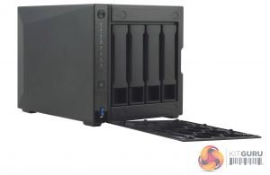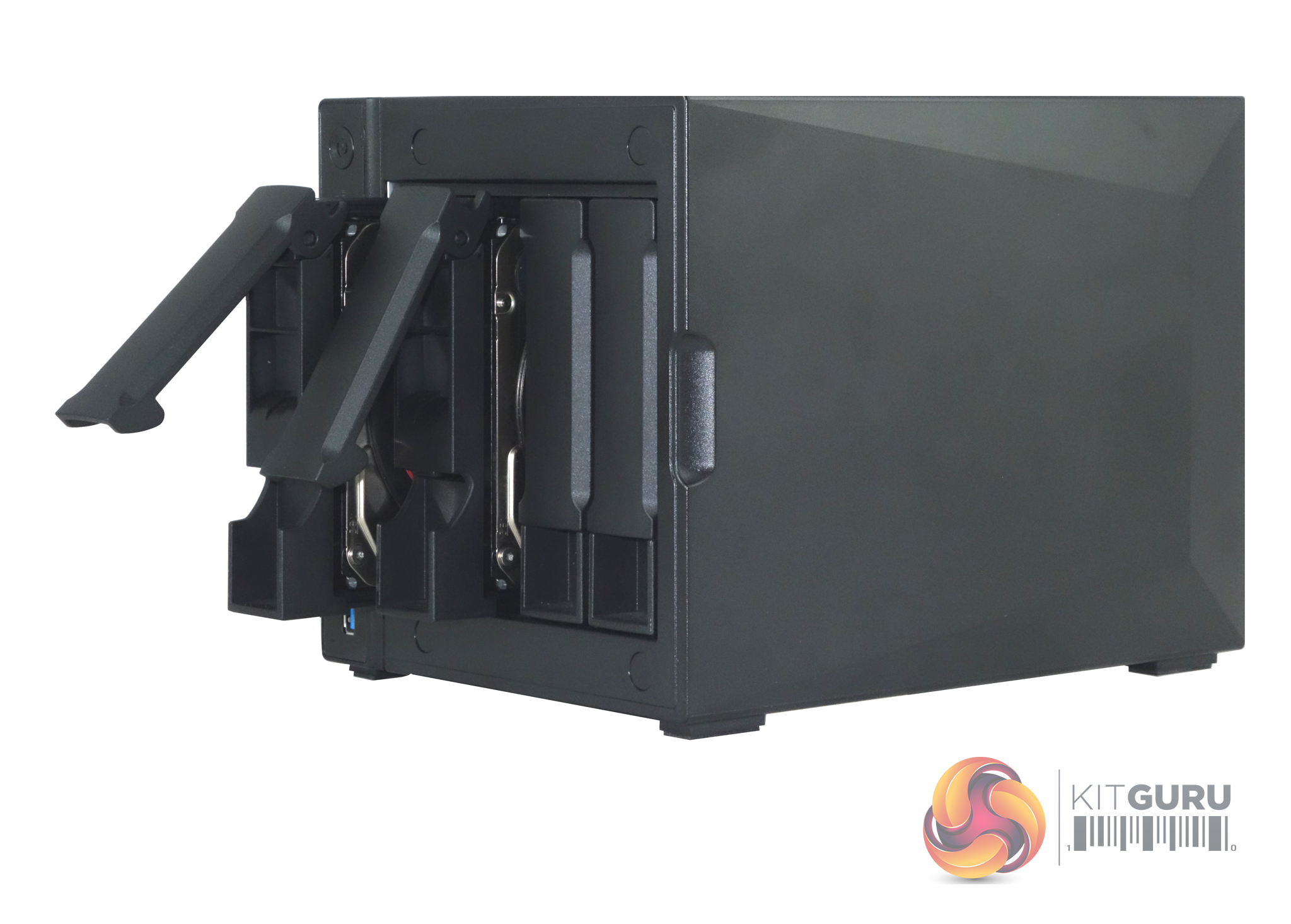 The AS4004T is pretty compact for a 4-bay NAS, measuring 230 x 174 x 170mm (D x W x H). Being cloaked in the latest Asustor diamond-cut exterior design, it's also a stylish looking little black box.
