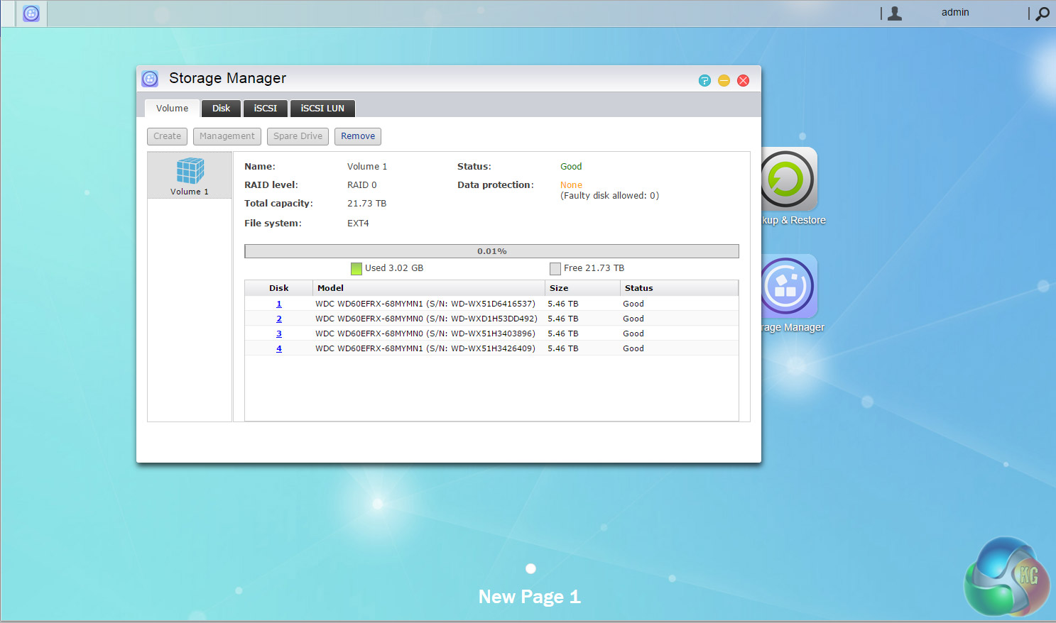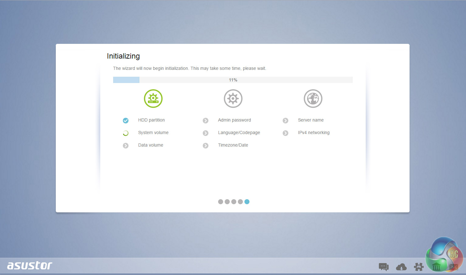 Setting up the AS6204T is a pretty straightforward and painless task; it only takes around 10 minutes to load the OS and get the unit ready for use, although waiting for the disks to synchronize obviously takes a great deal longer. Each stage along the install process is checked off on the initialisation page so you always know what's happening during the install procedure.