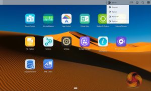 The search icon links to Searchlight, Asustor’s own search tool, designed for running fast and precise searches for files on the NAS. To the left of the search icon is the tools icon. This drops down a window that can display various NAS functions for easy monitoring. These include Storage Manager, Activity Monitor, Users and important log events.