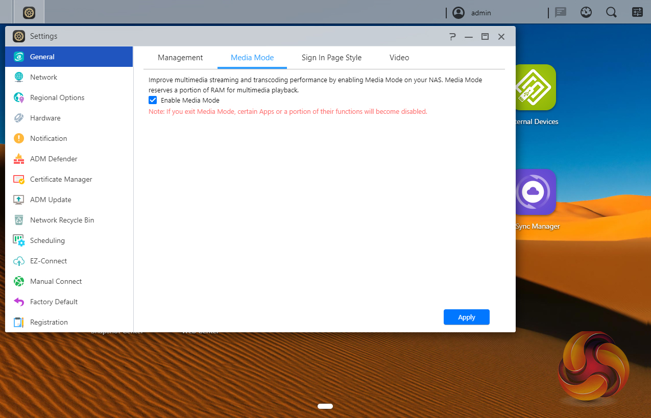 Media mode helps improve multimedia streaming and transcoding performance by reserving 512MB of the 1GB of system memory for multimedia tasks requiring large amounts of RAM.