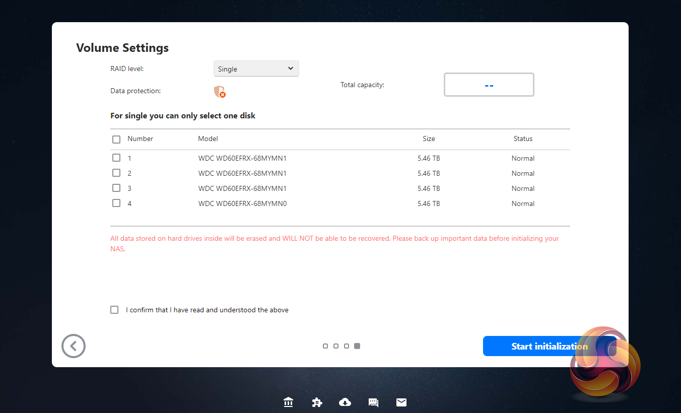 Whichever method you choose to set the NAS up, each stage along the install process is checked off on the initialisation page so you always know what’s happening during the install procedure.