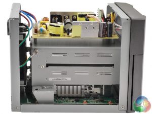 Once the cover is removed, the first thing you are confronted by is the board holding all the power components that sits on top of the drive cage assembly. It's not a particularly elegant solution, but in Buffalo's defence not that many people will be whipping the cover off on a regular basis. The motherboard sits under the drive cage in the bottom of the chassis.