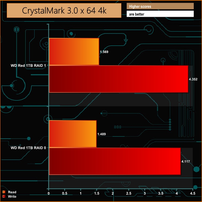 Although the TeraStation TS3210DN isn't the fastest when it comes to dealing with 4K data, it does show a fairly good level of consistency between each of the RAID arrays.