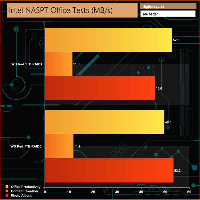 When it comes to the NASPT benchmarks office tests there's not a great deal of difference between the two arrays in terms of performance.