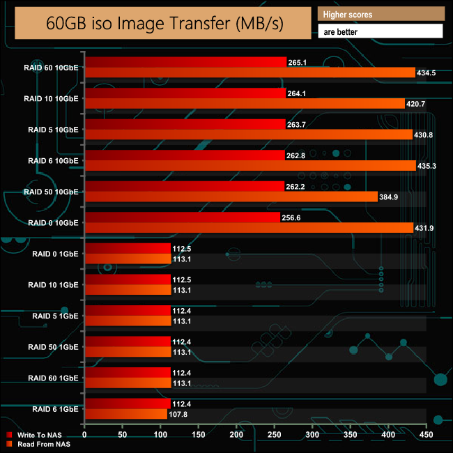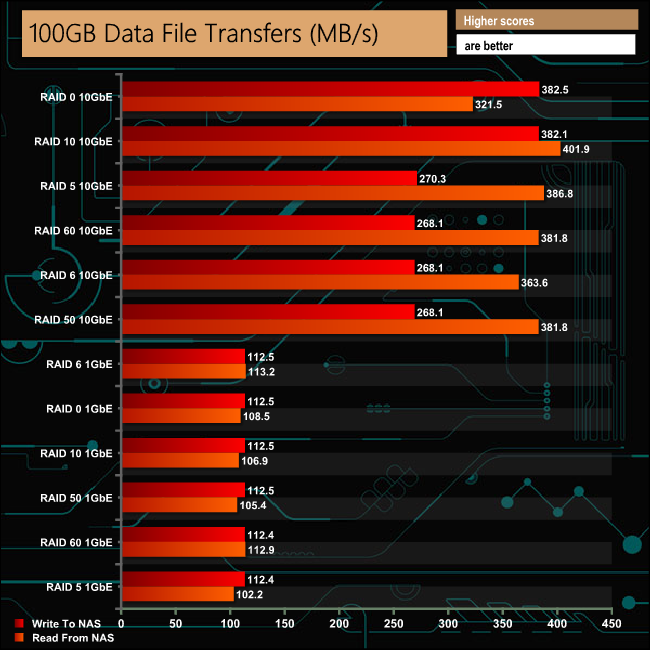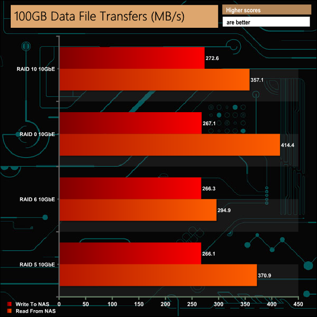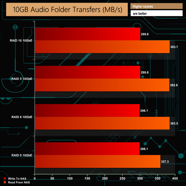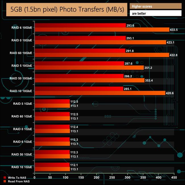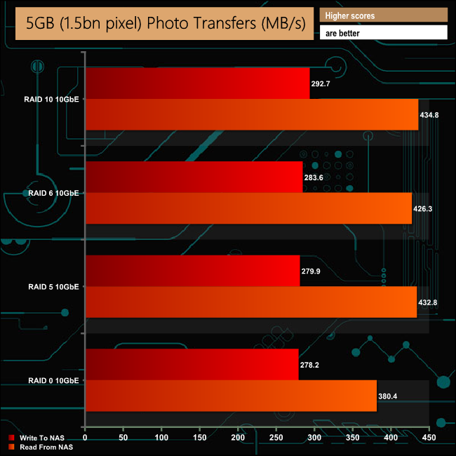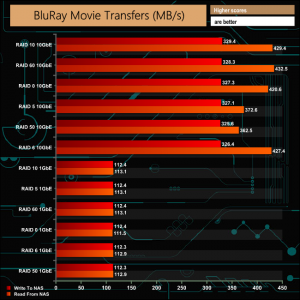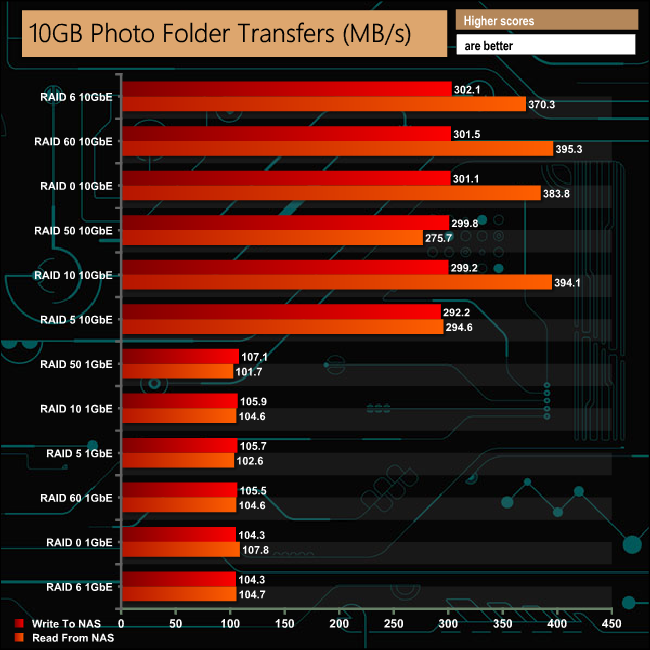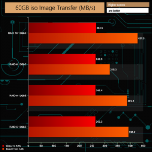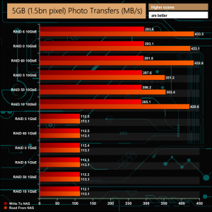 Our real life transfer tests proved no obstacle for any of the HDD/SSD arrays regardless of connection speed.