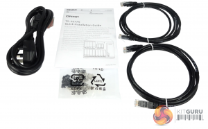 The box bundle is basic but contains all you need to get started using the NAS in the shape of a pair of Gigabit Ethernet cables and enough screws to fix drives into place. The tool free drive bays work really well and hold the drives firmly in place but it's good to get enough screws to give you peace of mind just in case. There's also a QIG (Quick Installation Guide).