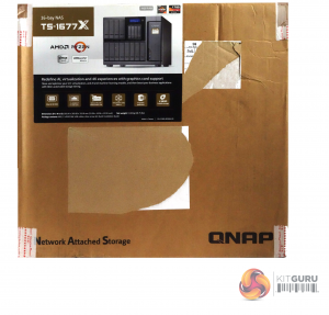 The box our review sample arrived in looked like it has had an interesting life, but the most important bit – the label that contains details of the NAS – was intact. The label has a good clear image of the TS-1677X. Above this image are stickers stating memory size and the fact it is AMD Ryzen 7 powered.
