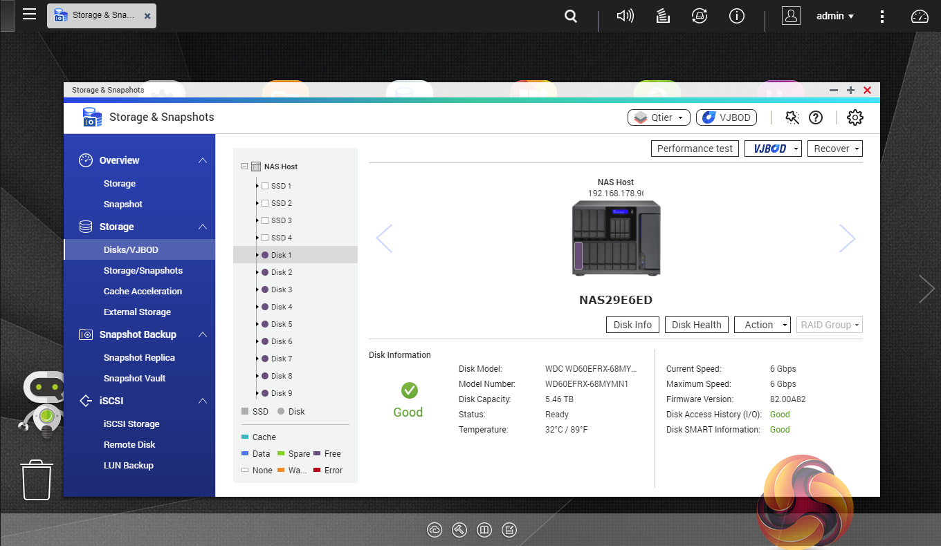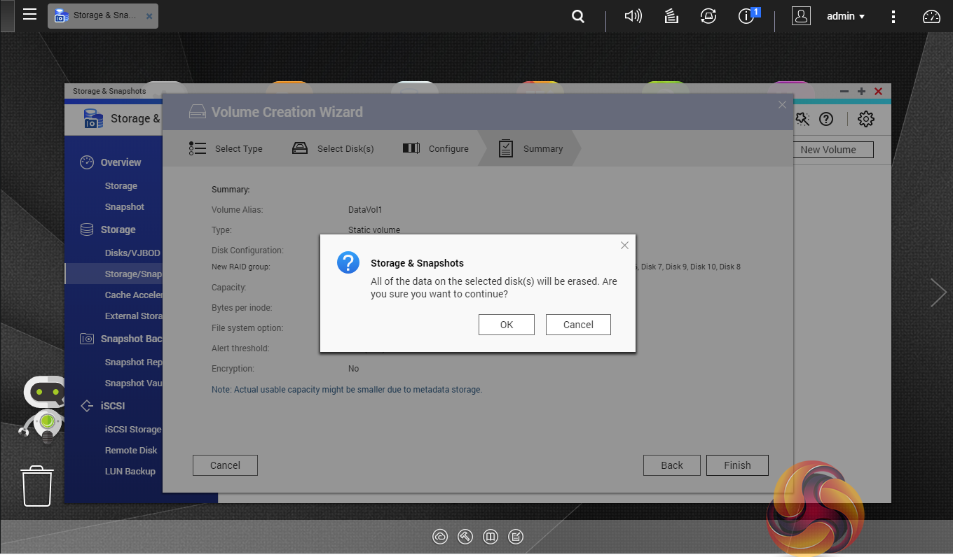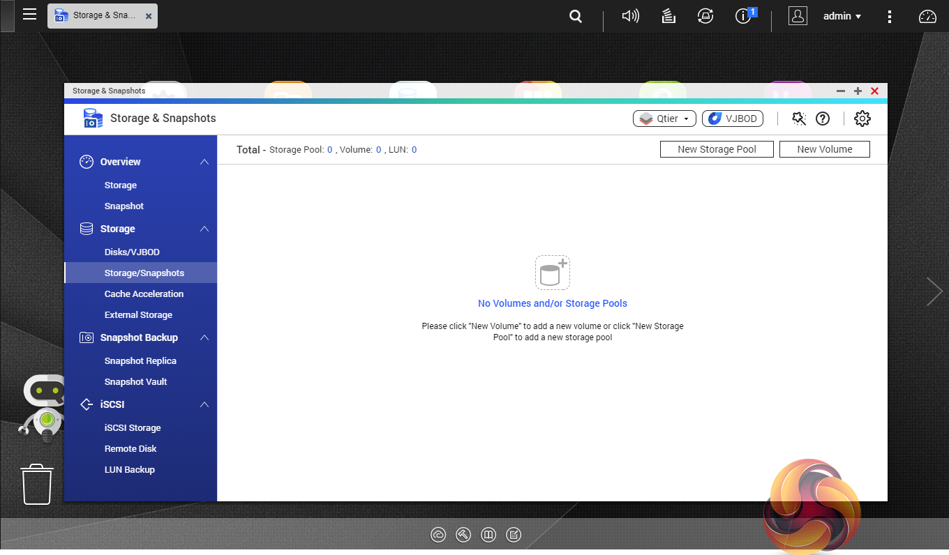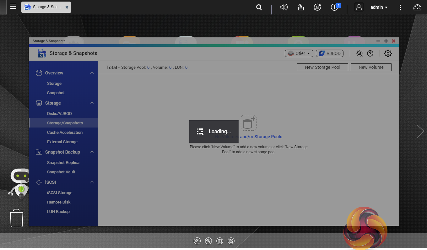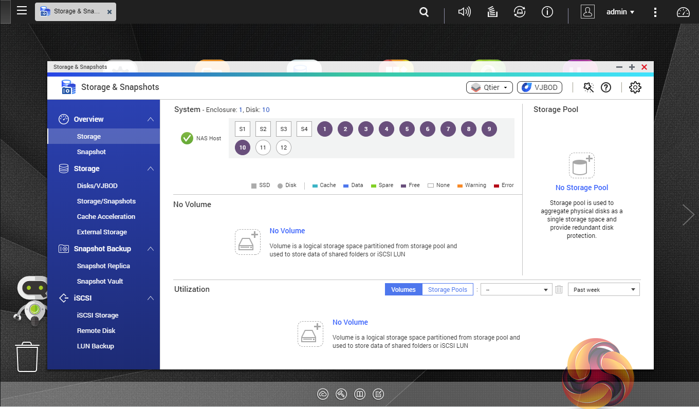 As with any NAS, disk management, RAID and volume creation are at the heart of things and with the TS-1677X this can be a bit complicated as there more than a few RAID options available with 12 3.5in and 4 2.5in disks.