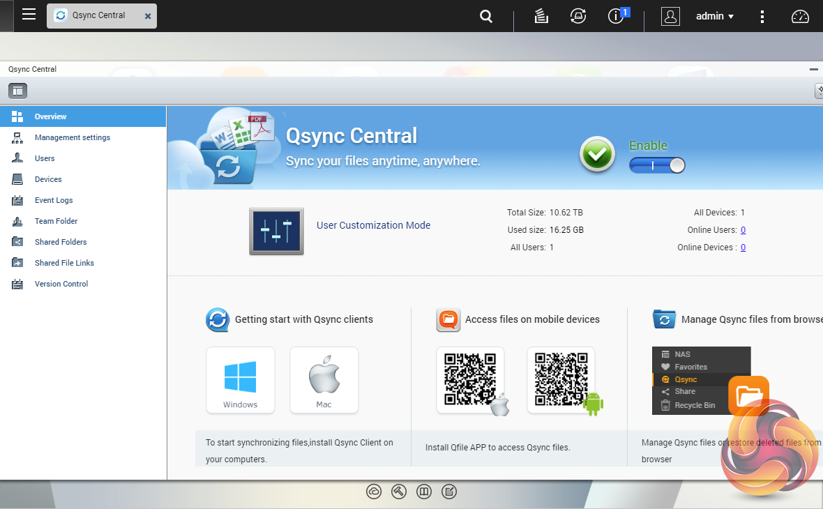 To access files from anywhere there is Qsync Central. Files added to the Qsync folder are available to the local NAS and all devices that are connected to it, including mobile devices.