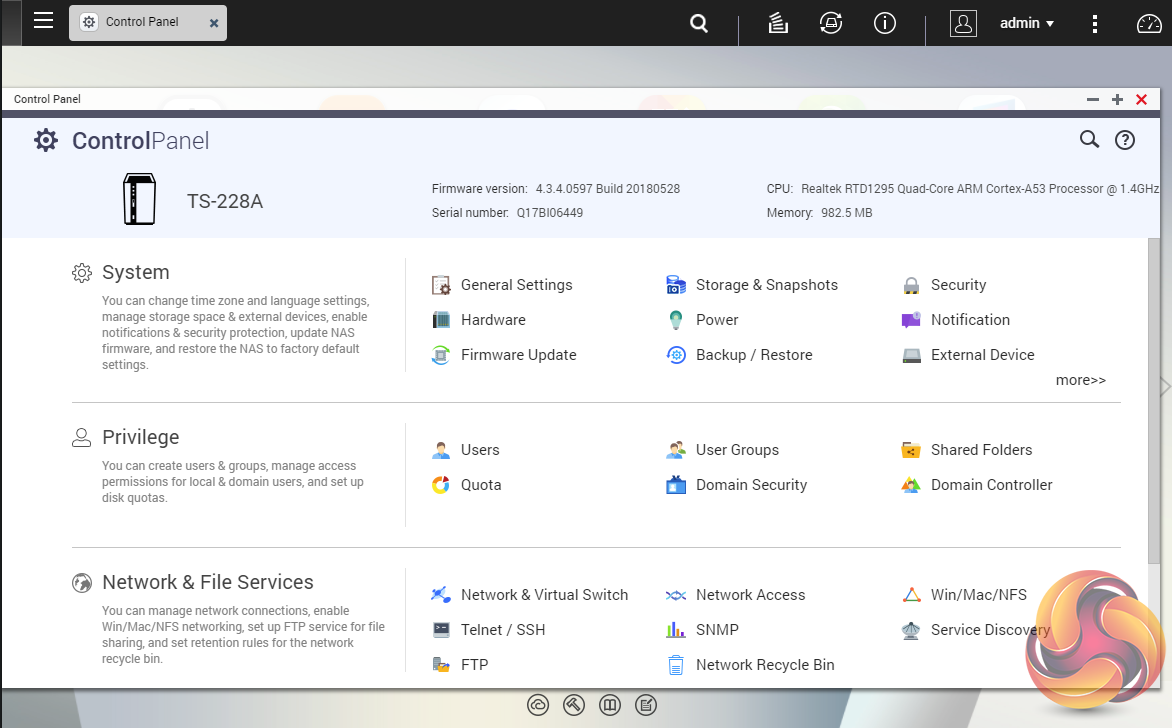 To test the TS-228A we used the latest (at the time of writing) 4.3.4 (0597) version of QNAP’s QTS OS. QNAP’s QTS is a graphically-rich OS with links to the major functions appearing as icons on the main page.