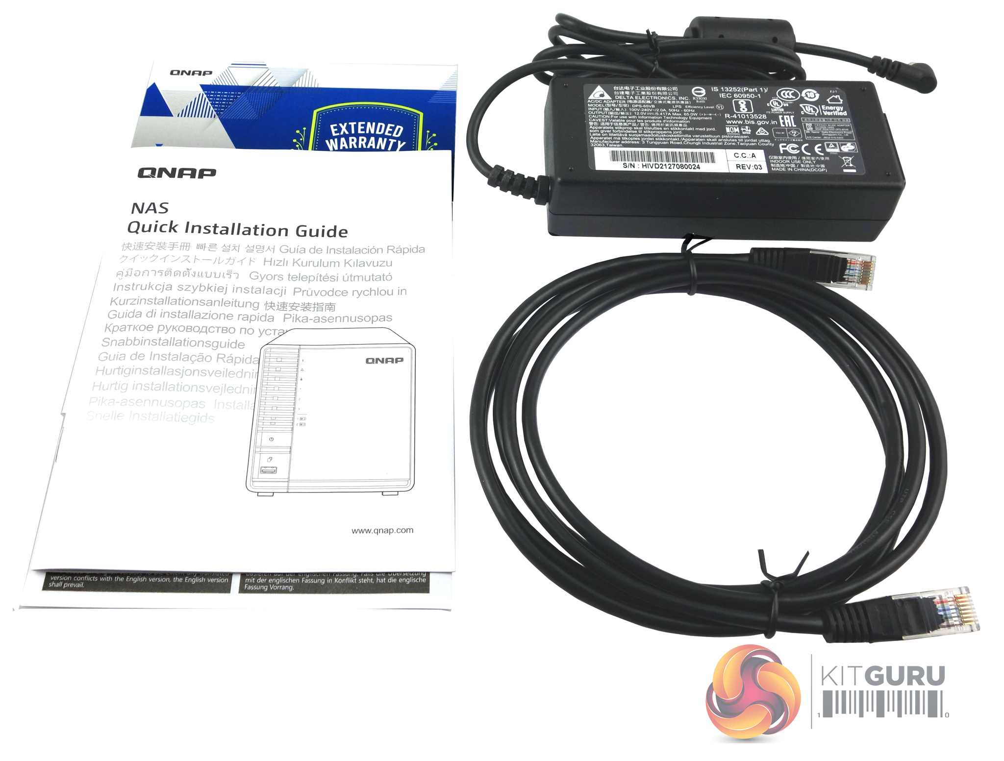The box bundle has everything you need to get started with the TS-364; Ethernet cable, mains cable, 65W power brick (Delta DPS-65VB LPS) and a Quick Installation Guide (QIG).