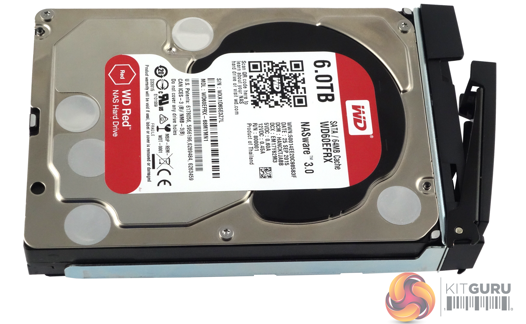 The drives are fixed into position via holes in the bottom of the trays and QNAP provide enough screws for 3.5in and 2.5in drive options. At the time of writing this review the TS-431XeU supports 3.5in drives up to 12TB.