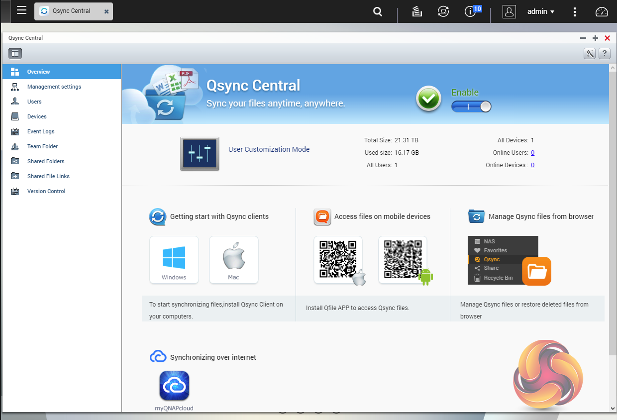 To access files from anywhere there is Qsync Central. Files added to the Qsync folder are available to the local NAS and all devices that are connected to it, including mobile ones with SSL secure connections.