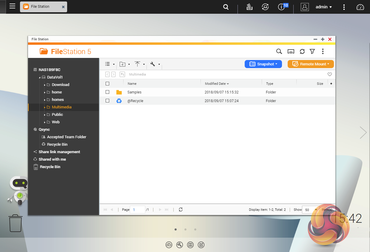 File Station is a complete file management system. It supports browsing and transfer of files from the NAS to public cloud services including Dropbox, Box, Google Drive, Microsoft OneDrive and OneDrive for Business, Yandex Disk, Amazon Drive and HiDrive. It also allows the mounting of shared folders from a remote NAS to a local one via FTP and CIFS/SMB.
