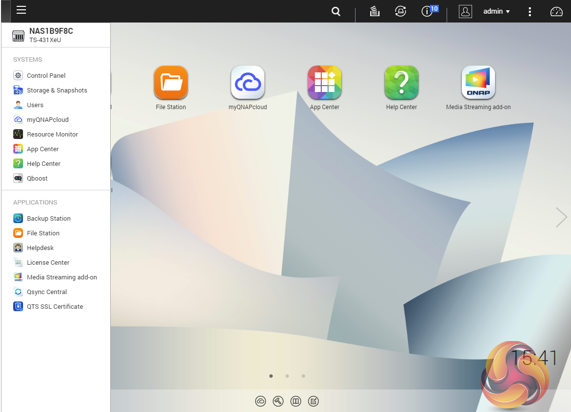 To test the TS-431XeU we used the 4.3.4 (0695) version of QNAP’s QTS OS. QNAP’s QTS is a graphically-rich powerful OS with links to the major functions appearing as icons on the main page.