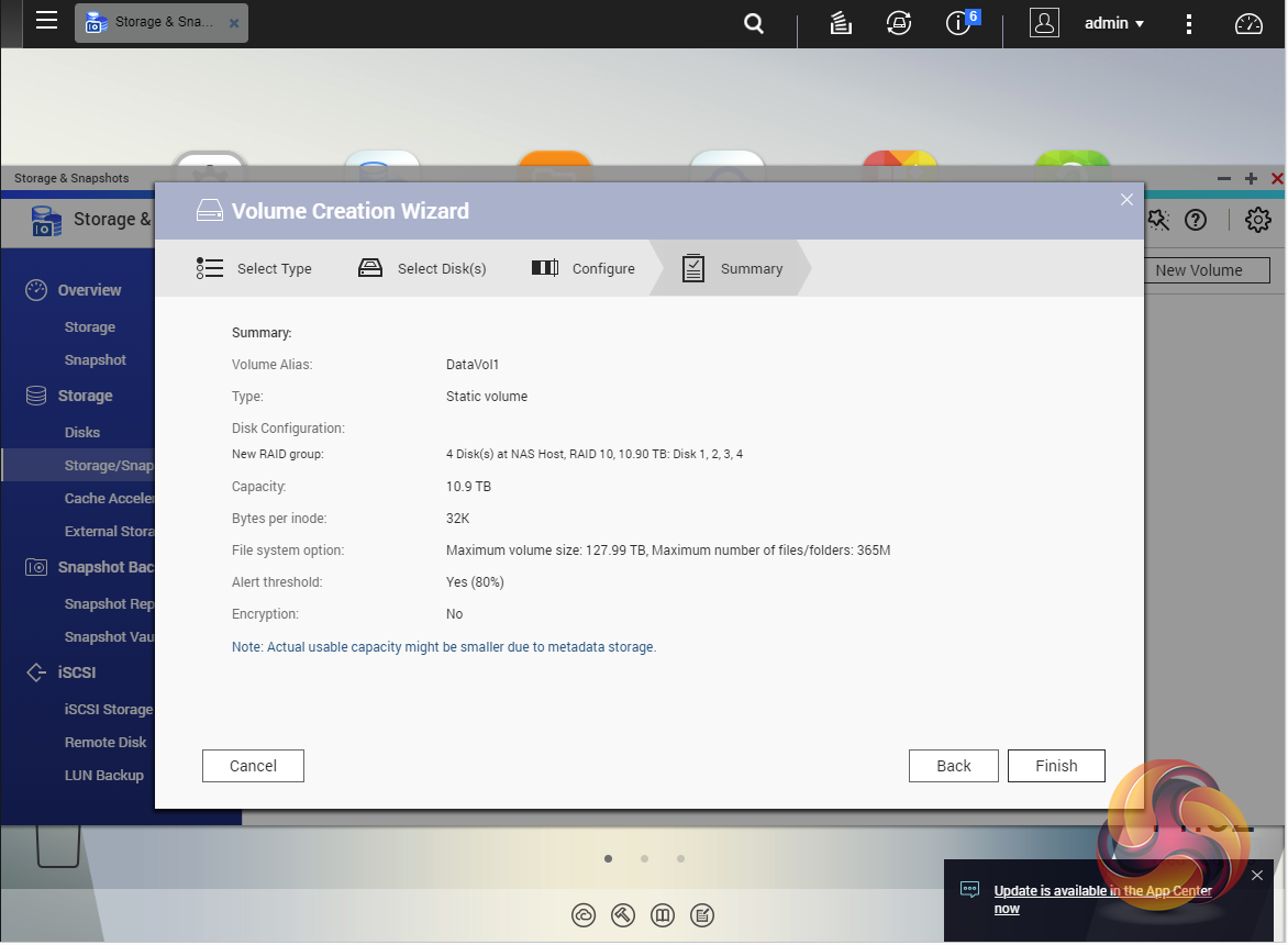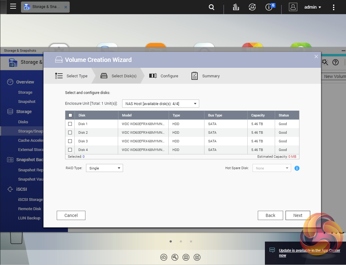 As with any NAS, disk management, RAID and volume creation are at the heart of things and to QNAP’s credit, setting the storage space(s) up is pretty straightforward thanks to the clear and precise step by step setup pages in QTS.