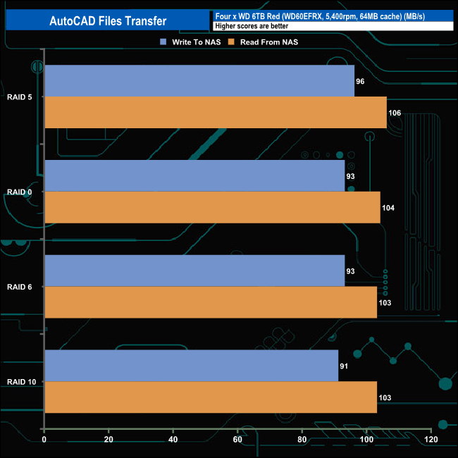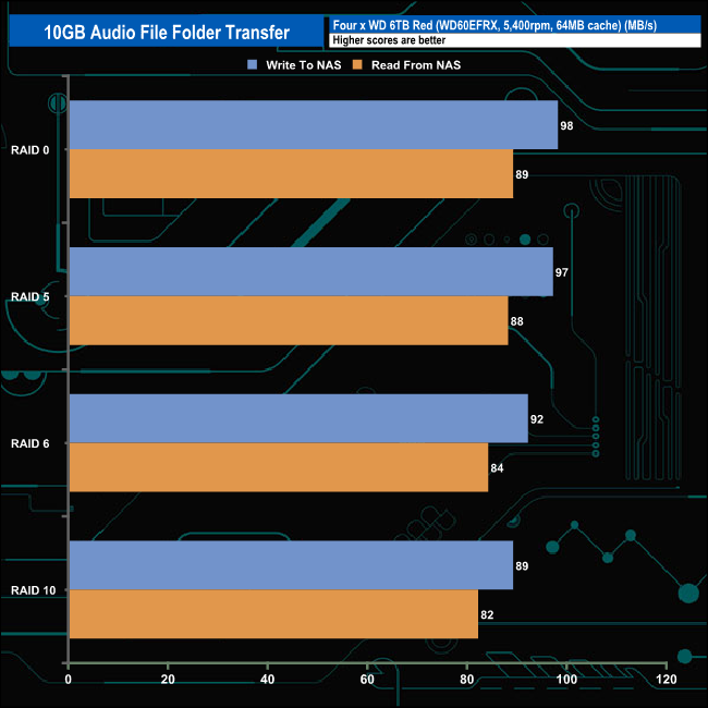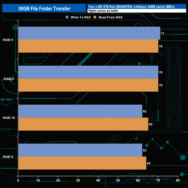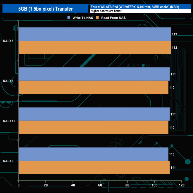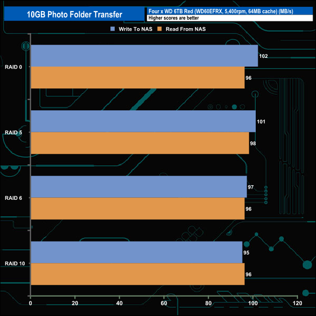 The TS-451D2-4G dealt with our real-life file transfer tests without any real problems and displayed a good deal of consistency across the tested arrays.