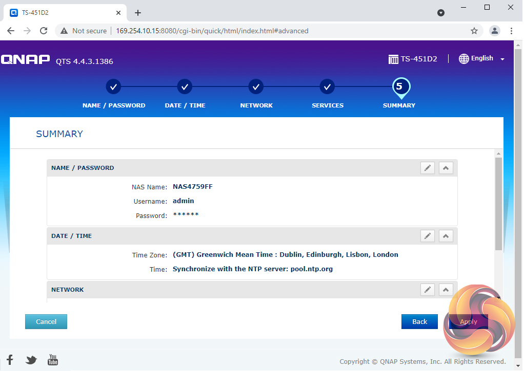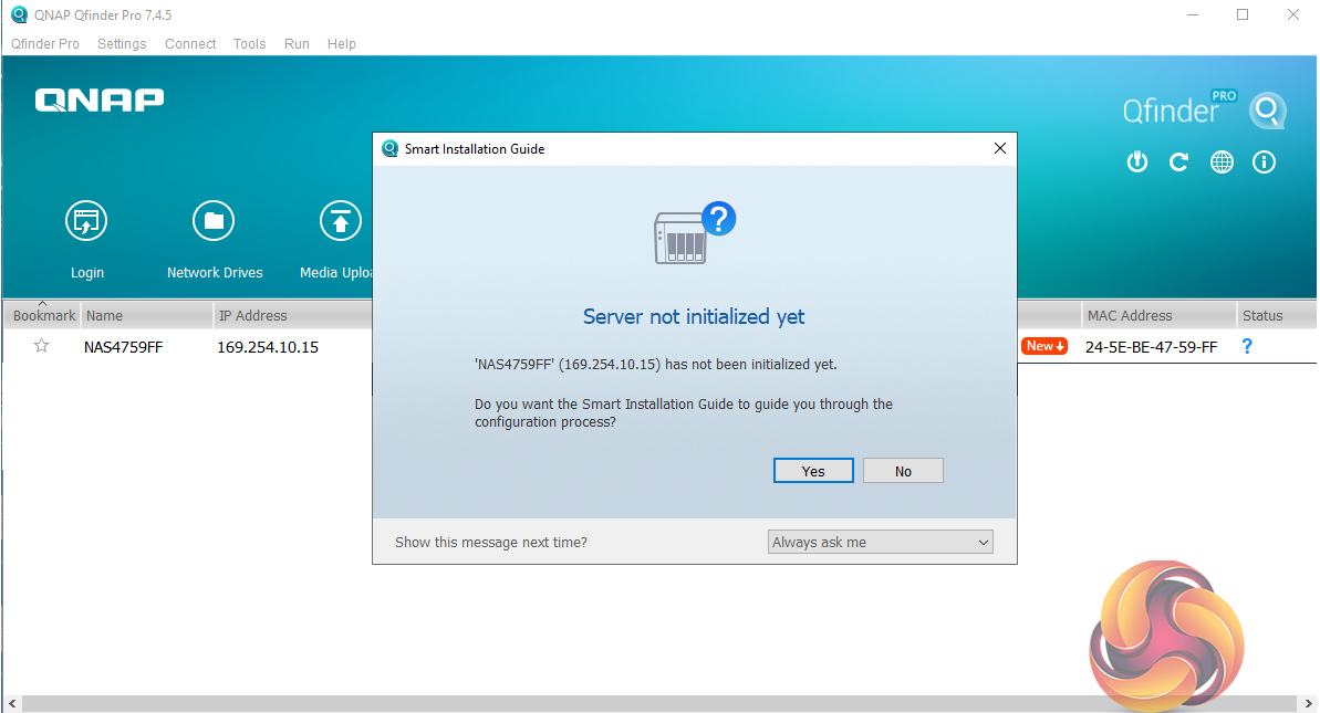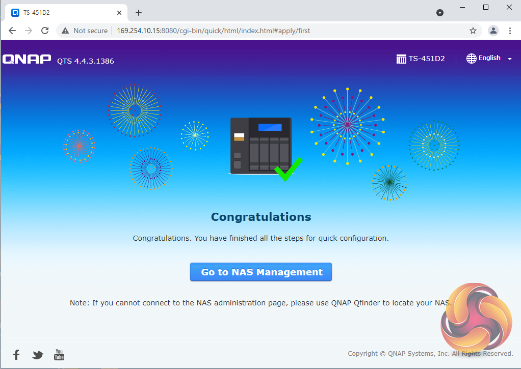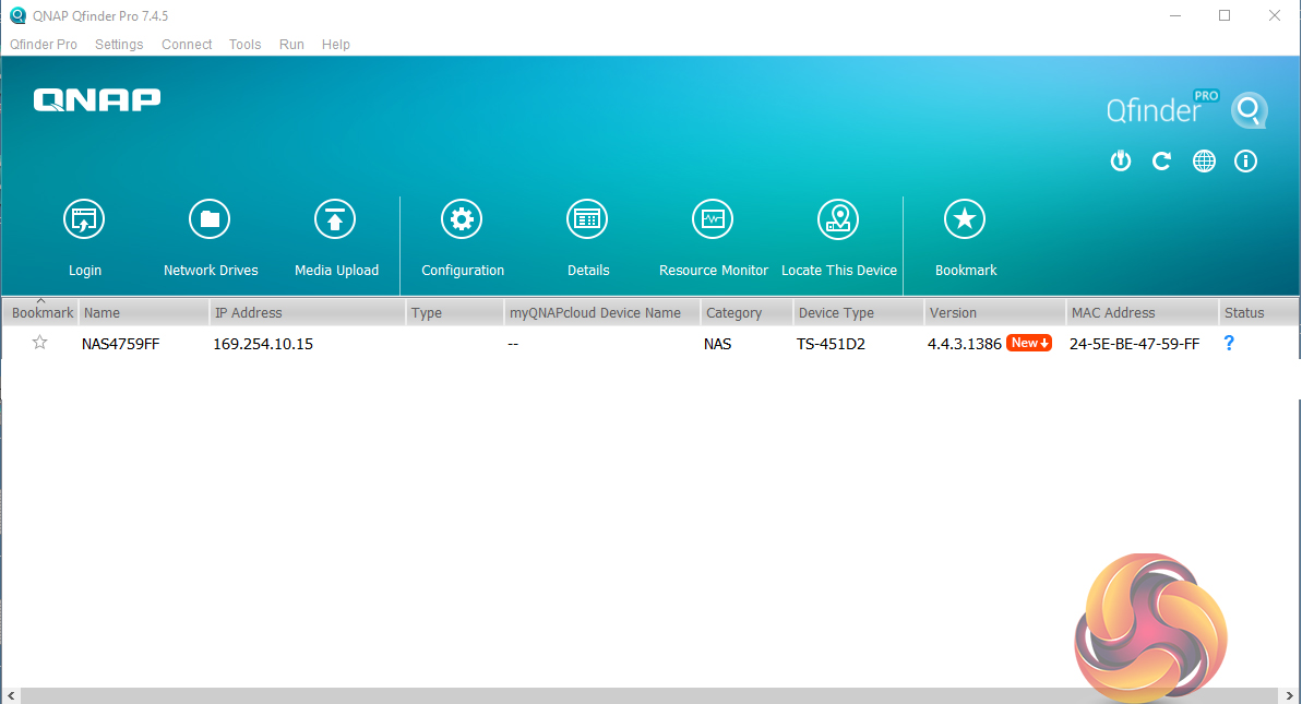 As is usual with a QNAP NAS there are two ways of setting up the TS-451D2, either online by entering the Cloud key which is written on a sticker on the side of the unit, or by using QNAP’s Qfinder Pro utility which can be downloaded from the QNAP website. Qfinder Pro searches for QNAP devices on the network.