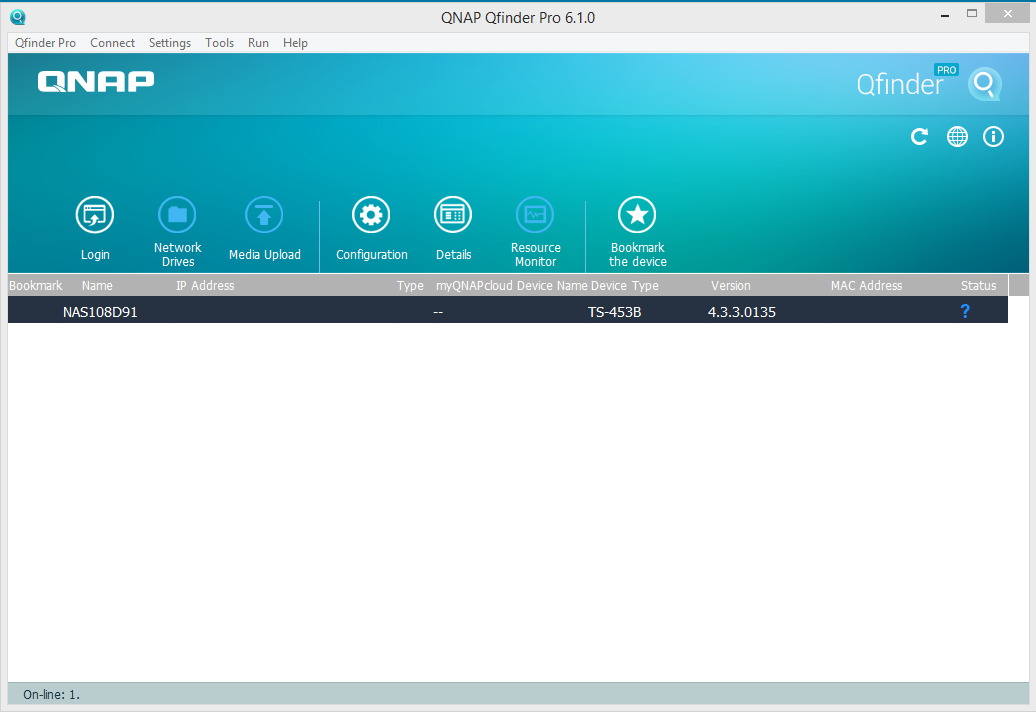 There are two ways of setting up the TS-453B , either online by entering the Cloud key which is on the side of the unit or by using QNAP’s Qfinder Pro utility which can be downloaded from the QNAP website. Qfinder Pro searches for QNAP devices on the network.