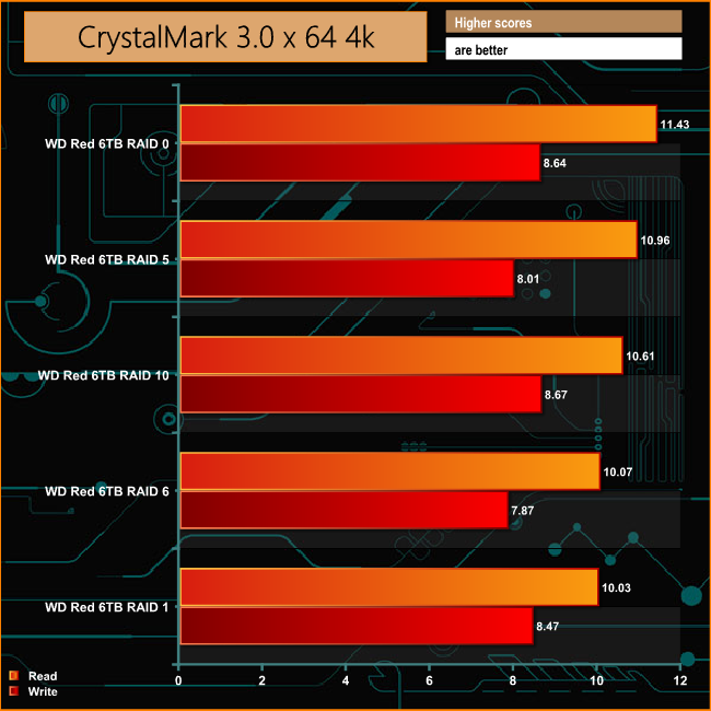 The average 4K read performance of the TS-453B is marginally faster at 10.62MB/s than the write at 8.33MB/s.